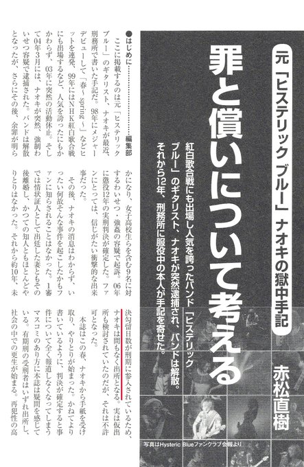 ヒステリックブルー 連続強姦事件 2016年 出所目前のヒスブル ナオキが心情を告白 Naver まとめ