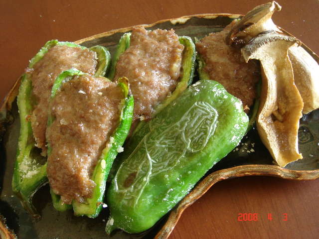 オーブンで ピーマンと椎茸の肉詰め お花見ギャザリング グランプリ