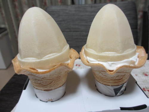 持ち帰りの場合はソフトクリームにかぶせるコーン 立てられる容器付き