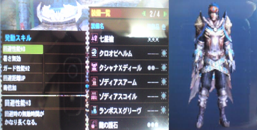 Mh4g 回避ランサー用装備 回避性能 3 回避距離up 斬れ味up Etc