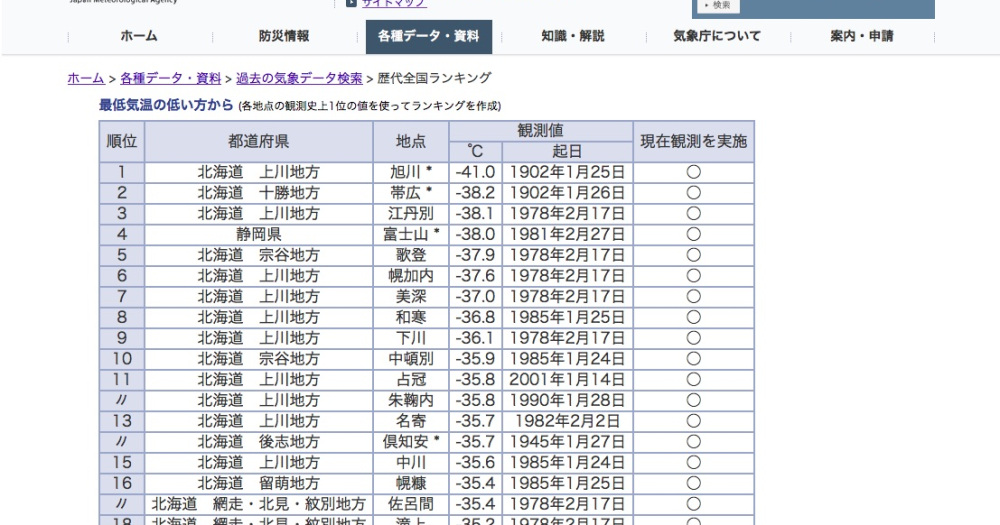 ねとらぼ On Twitter 気象庁の 国内最低気温ランキング がほぼ 北海道ランキング な件 南極 昭和基地レベルの寒さ だと 北海道旭川が持つ 国内最低気温記録 はマイナス ねとらぼ Https T Co Nnq603e5qg Itm Nlabから Https T Co J4ozitnsu4