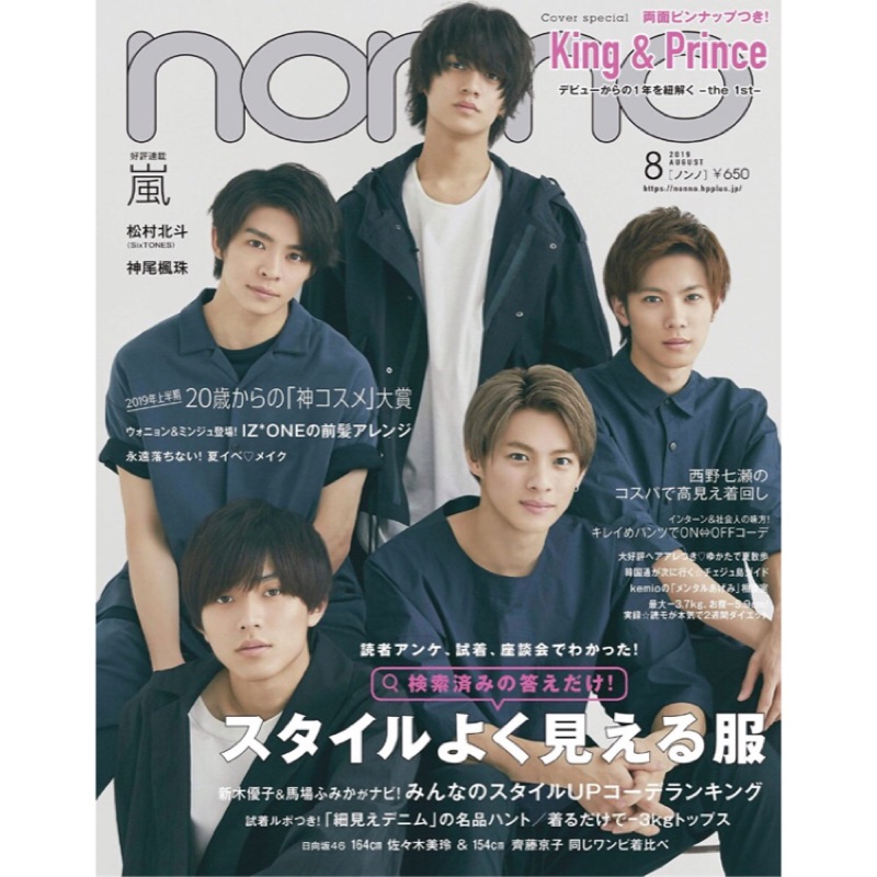 Non No 8月號2019 ノンノking Prince 平野紫耀永瀨廉嵐相葉雅紀松本潤
