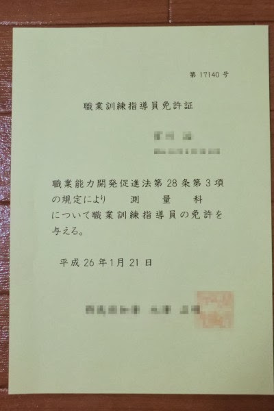 以逸待労 36歳の家活 職業訓練指導員の免許証をもらってきた