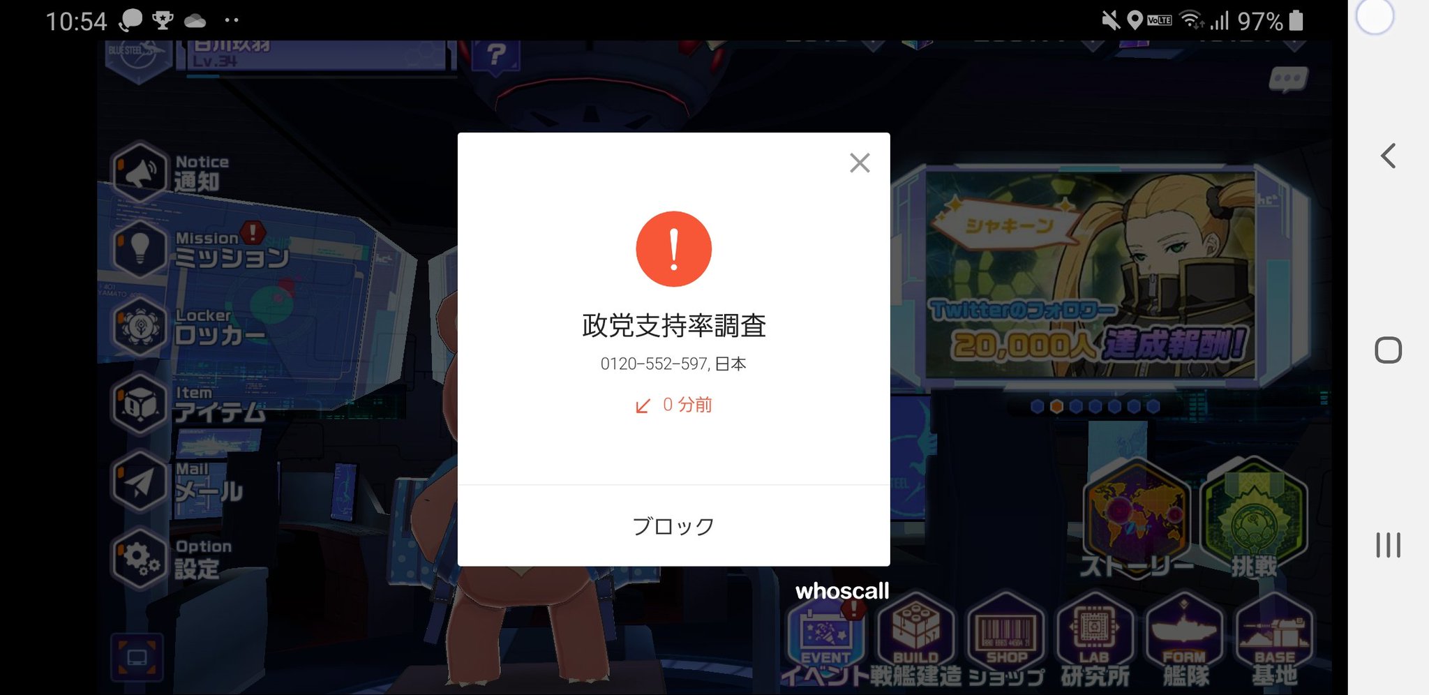 白川玖羽 On Twitter 政党支持率調査 0120 552 597 が自動応答で